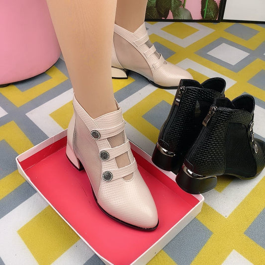 Pointed Toe Leather Mesh Breathable Boots