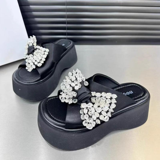 Rhinestone Lamb Wool Casual Chunky Sneakers