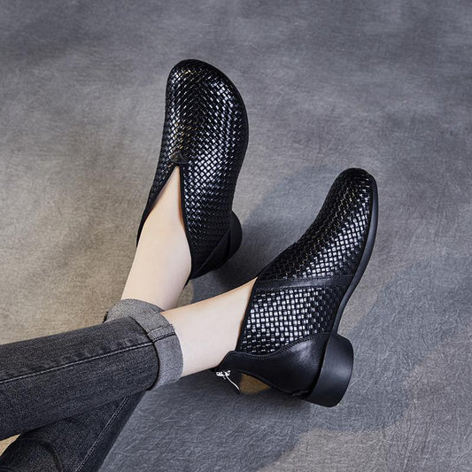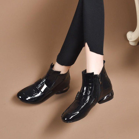 Flat Leather Zipper Boots