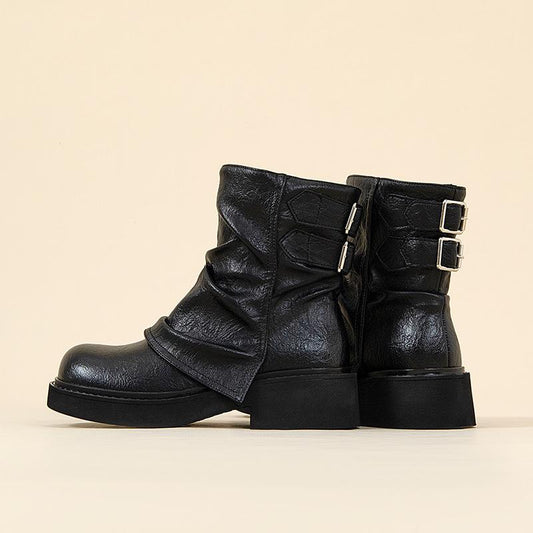 Belt Buckle Mid Calf Boots