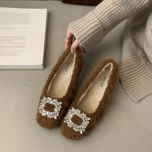 Rhinestone Square Flat Shoes