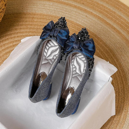 Sliver Silk Banquet Pearl Floral High Heels Shoes