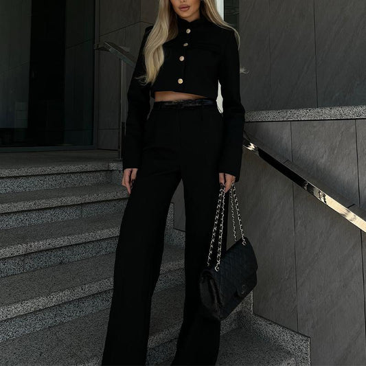 Solid Color Single-breasted Fashion Casual Two Piece Set