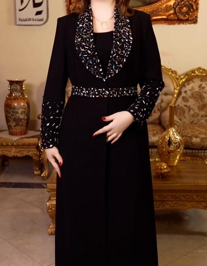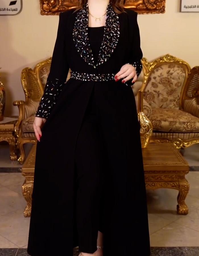 Black Rhinestone Belted Jacket