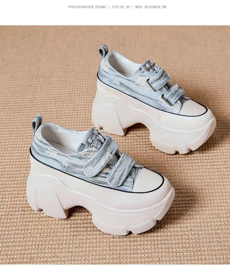 Denim Velcro Thick-Sole Casual Shoes