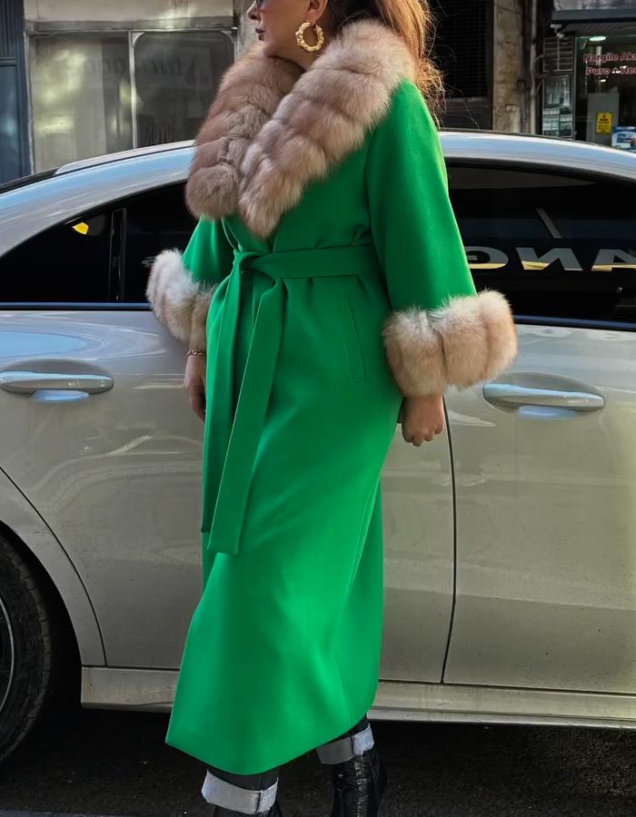 Green Lace-Up Long Jacket