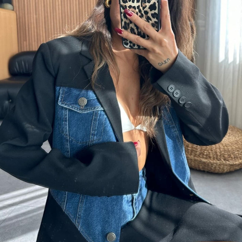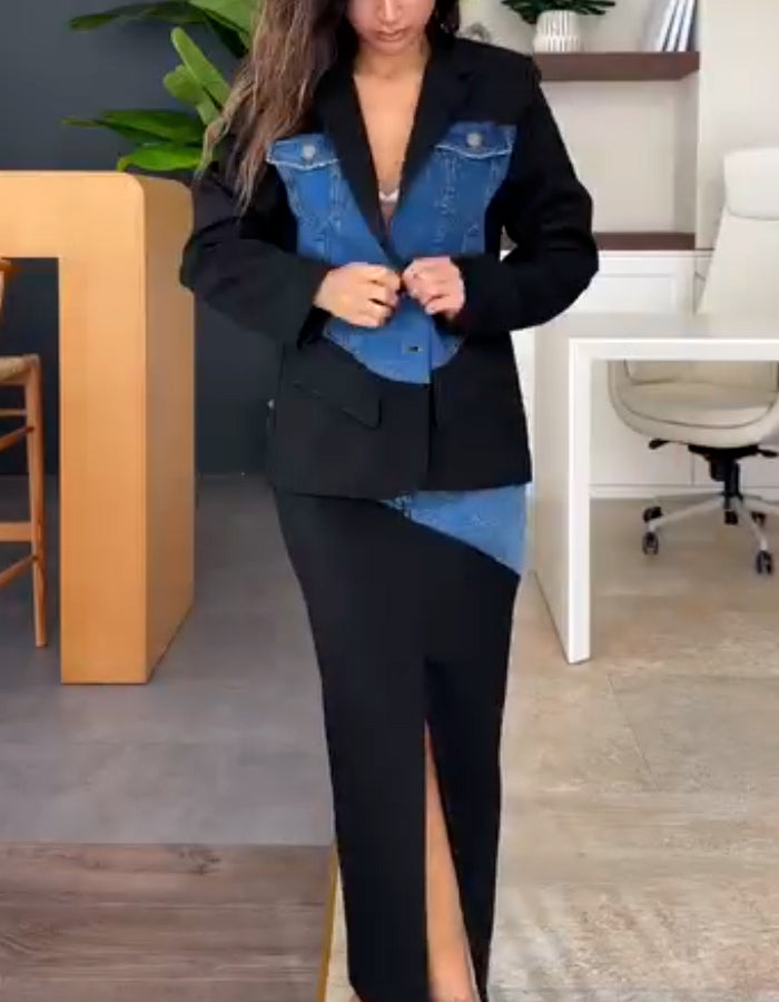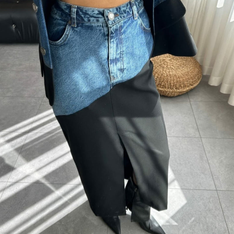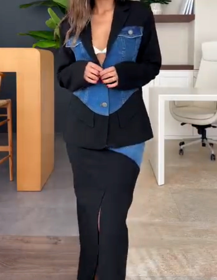 Patchwork Denim Two-Piece Set