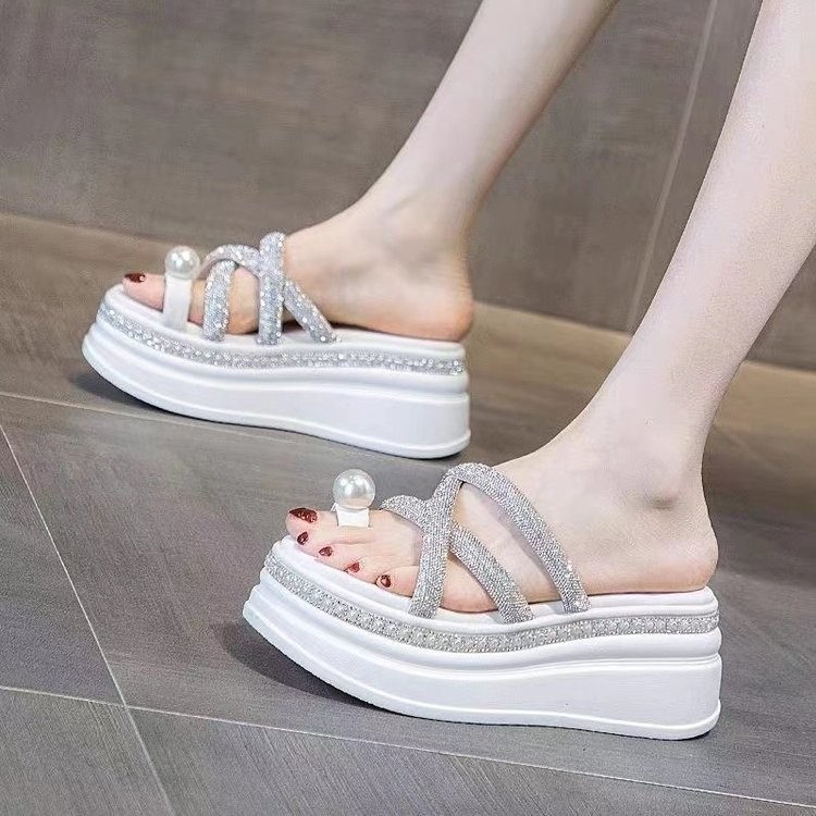 Pearl Toe Strap Rhinestone Slipper
