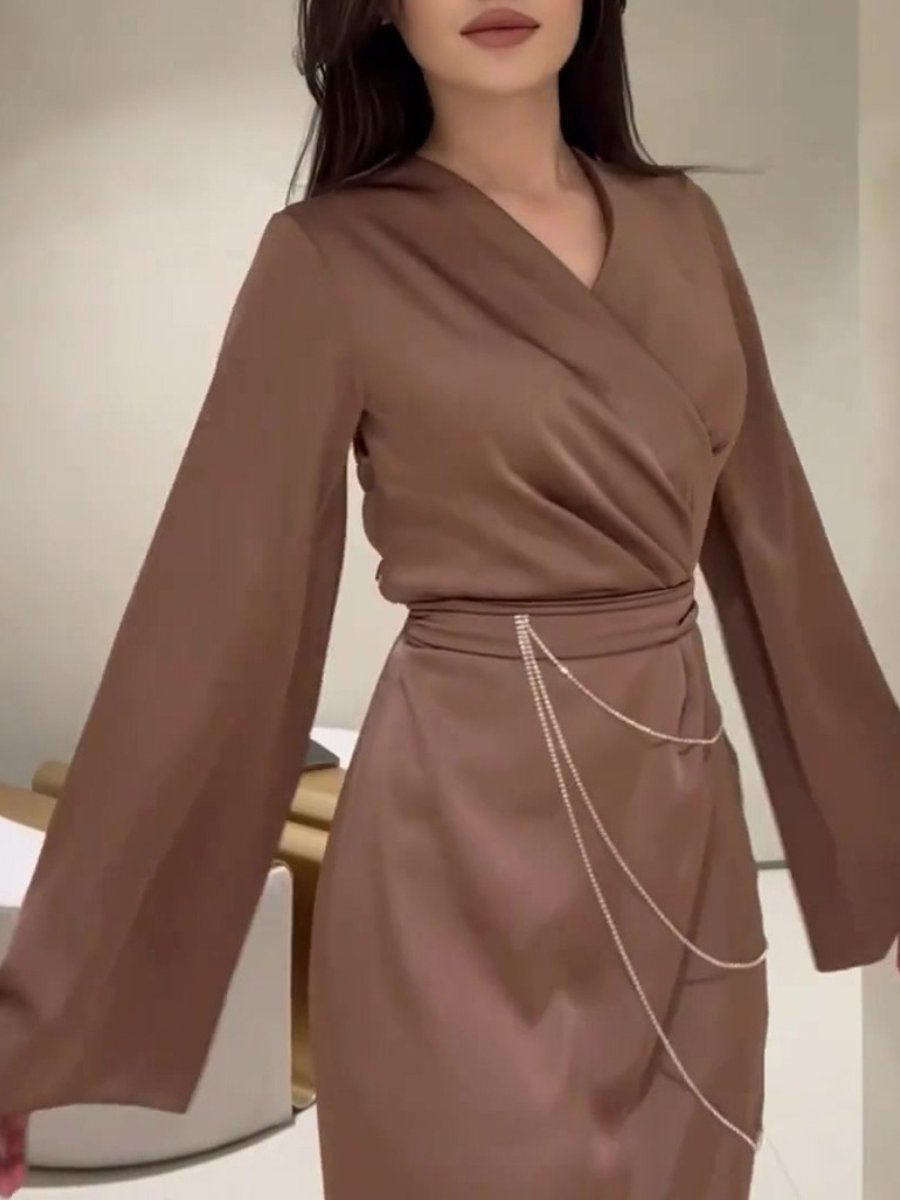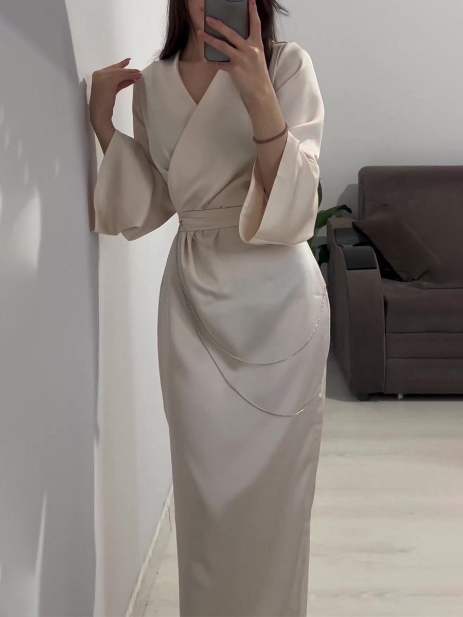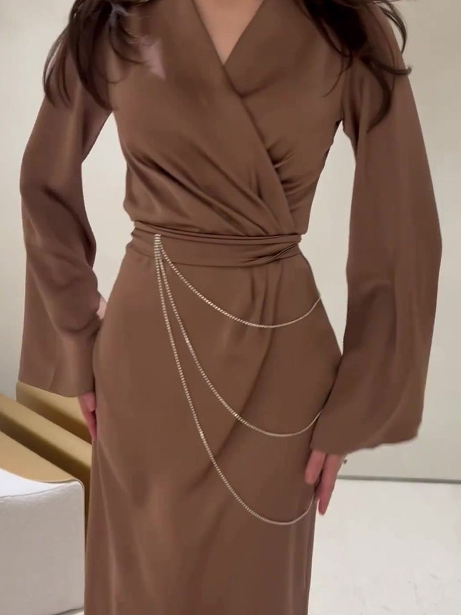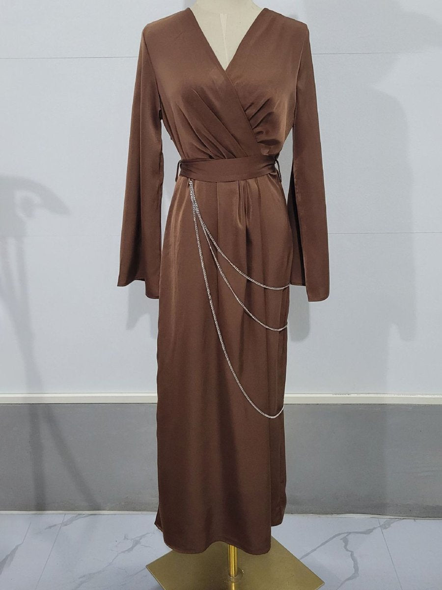 Rhinestone Sparkle Chain V Neck Maxi Dress