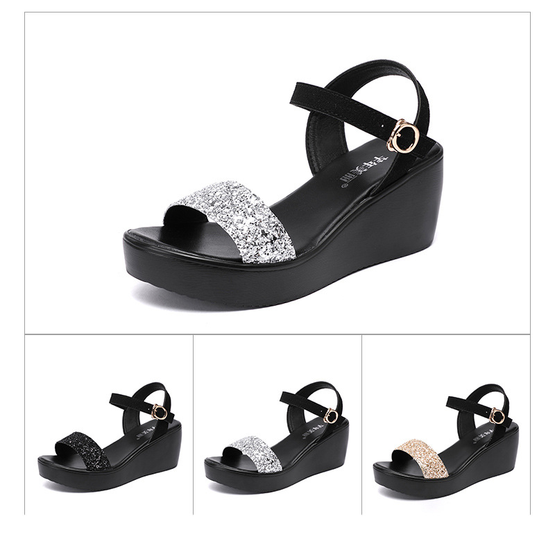 Roman Shiny Strap Wedges Heel Sandals