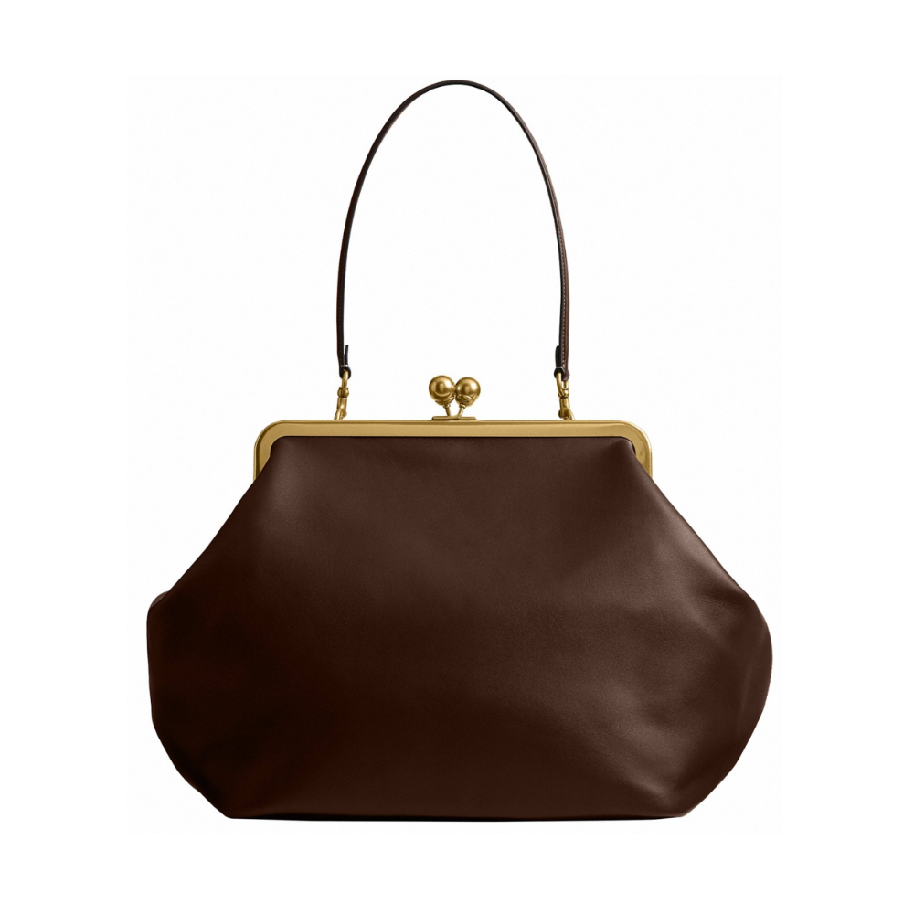 Crafted from premium glove-tanned leather, this large frame bag combines vintage charm with modern practicality. Its structured silhouette and kiss-lock closure bring a touch of retro sophistication, while the spacious interior makes it perfect for both daily essentials and special occasions.