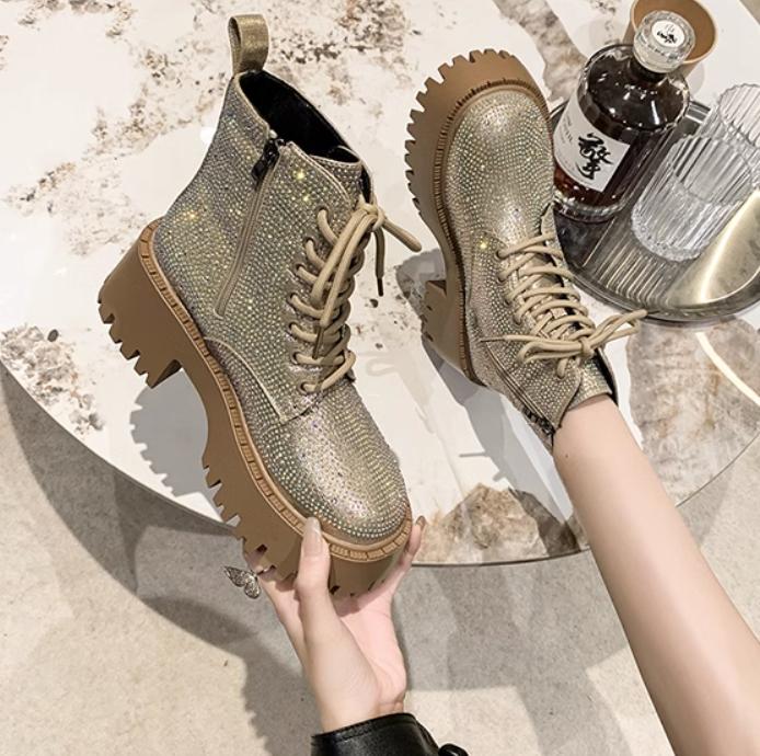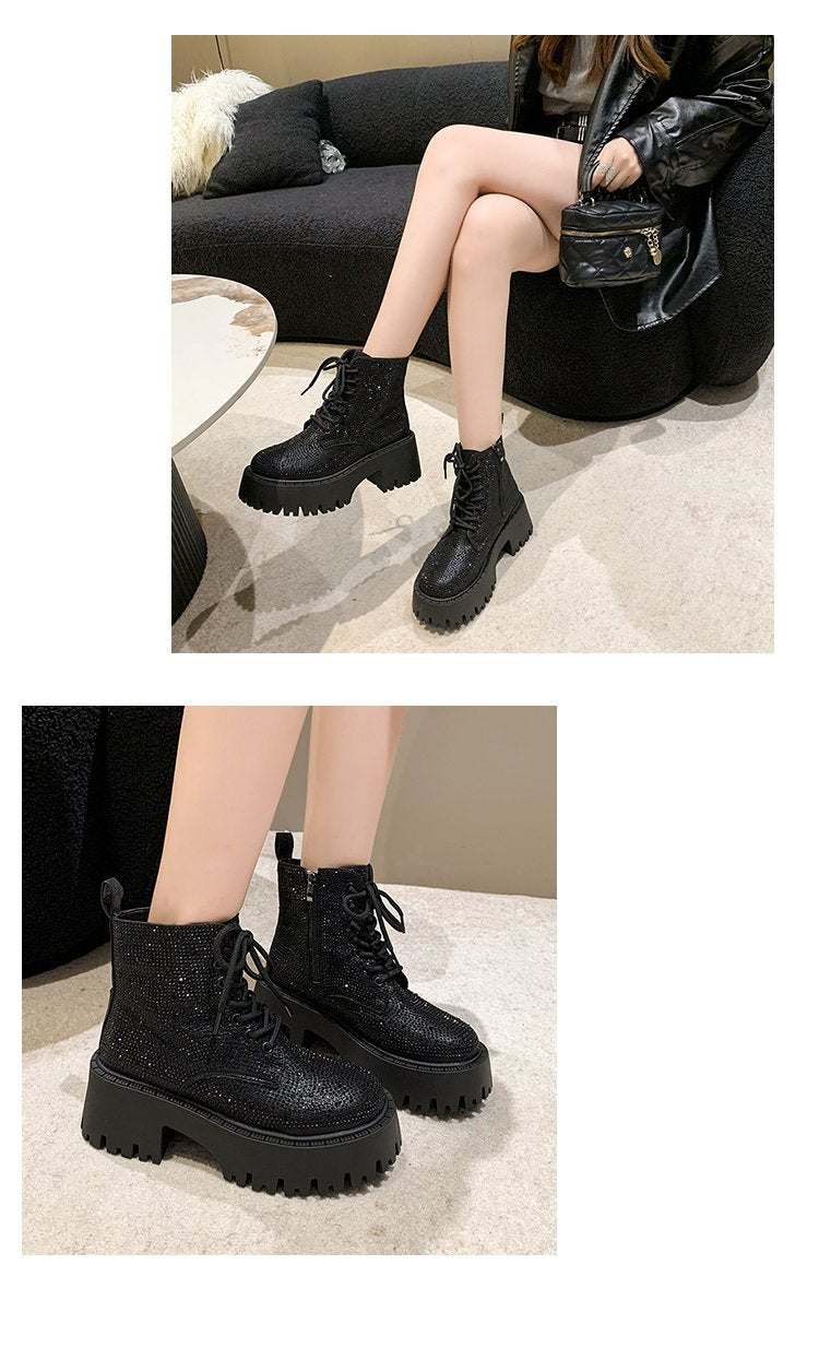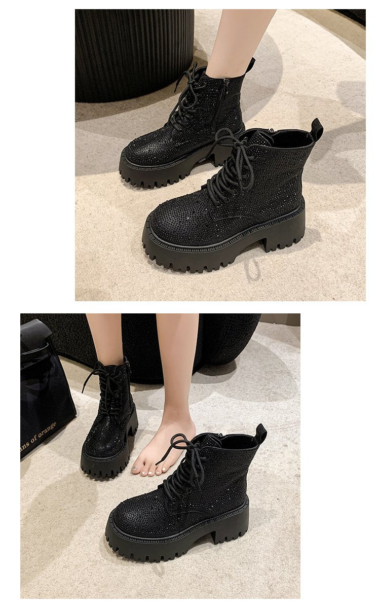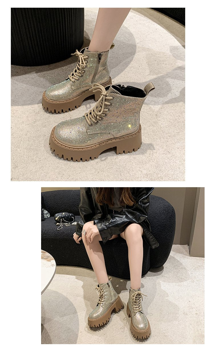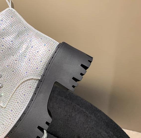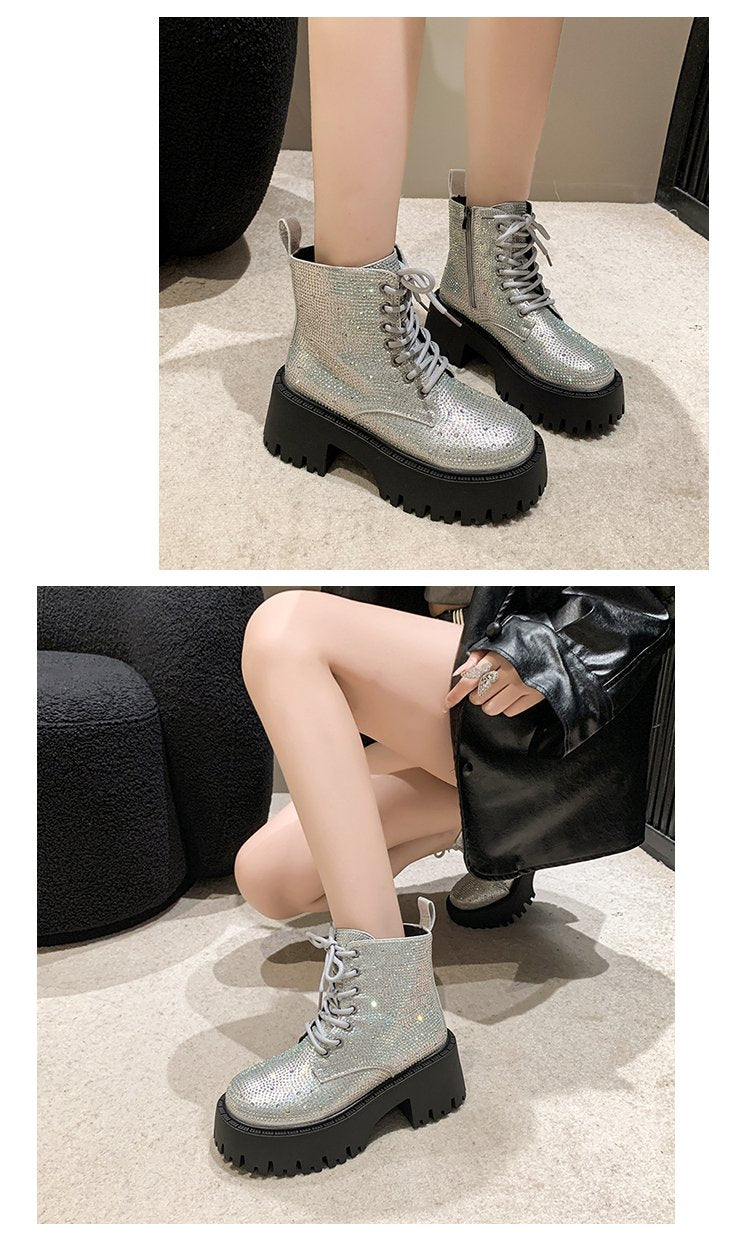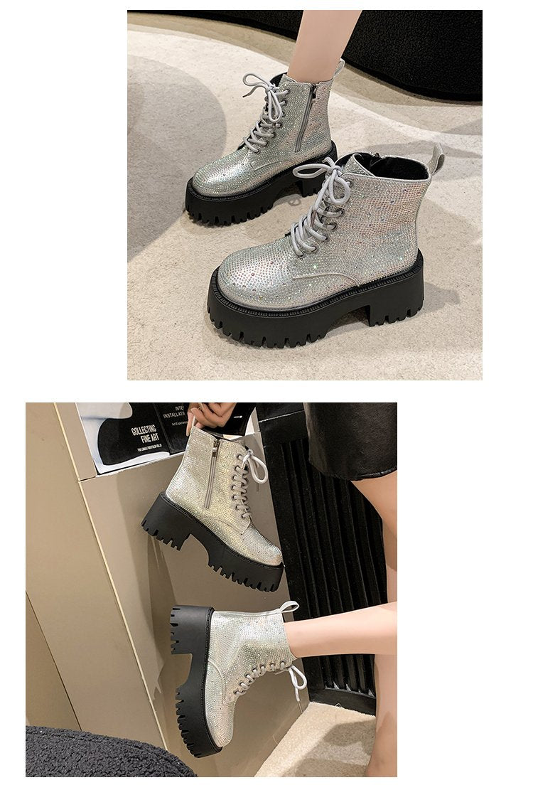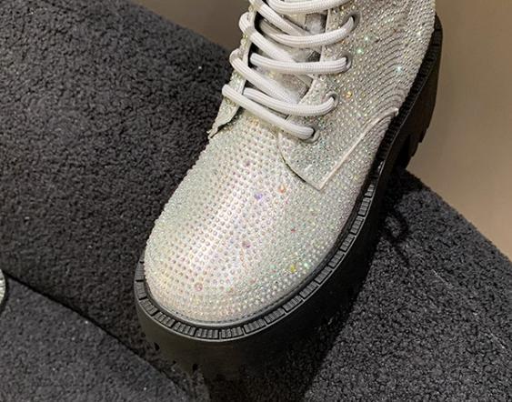 Shine Rhinestone Leather Casual Ankle Boots