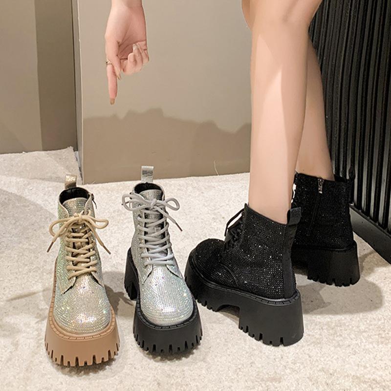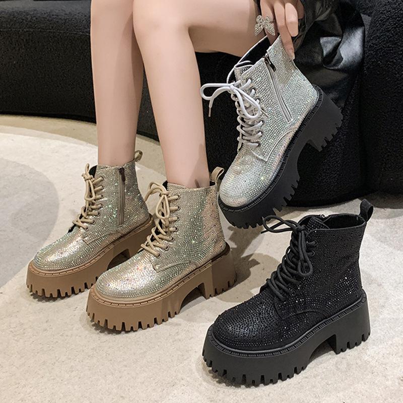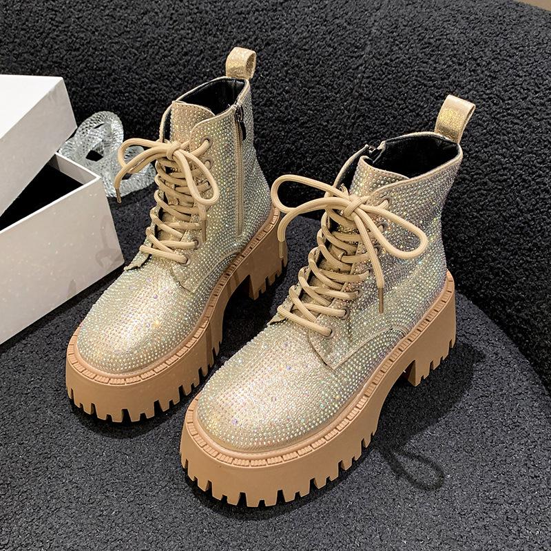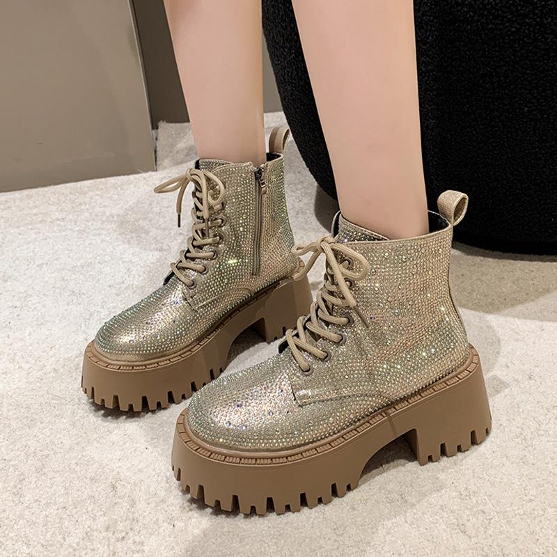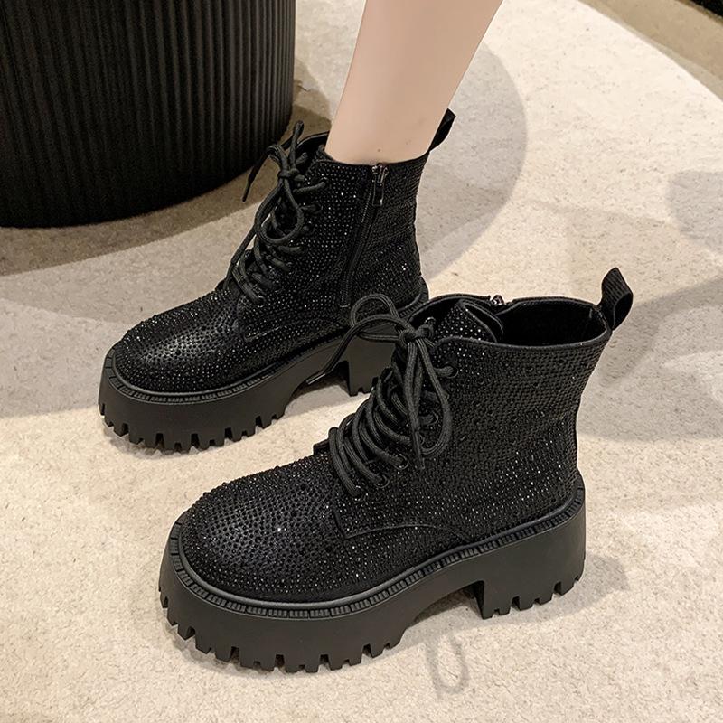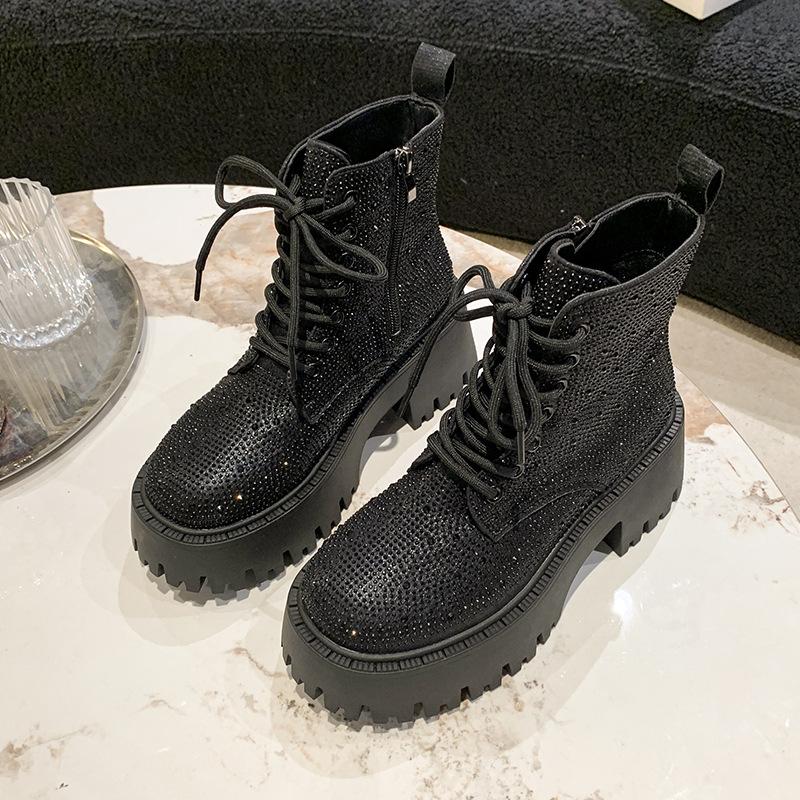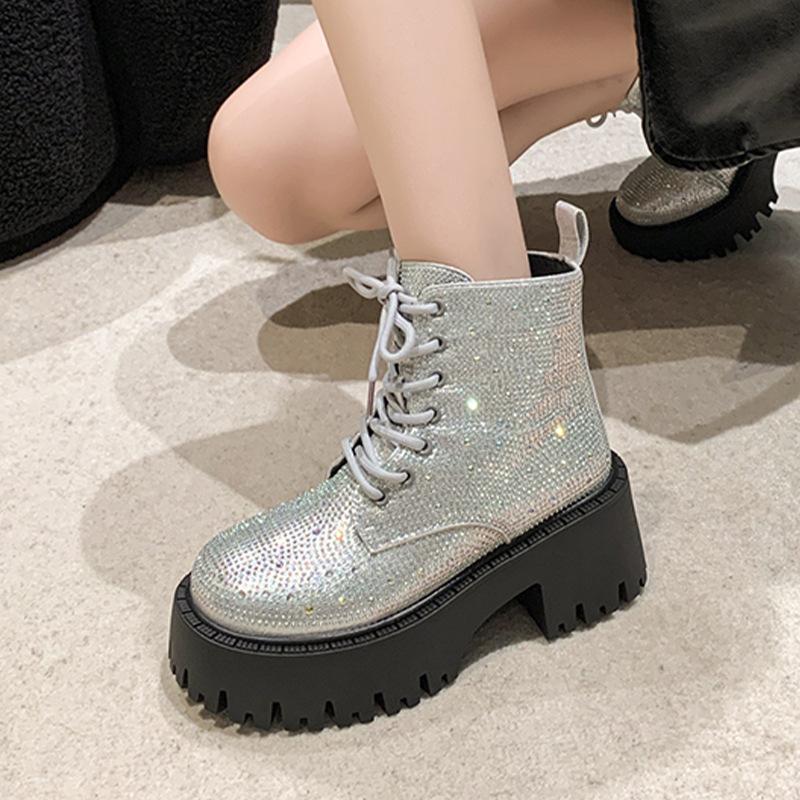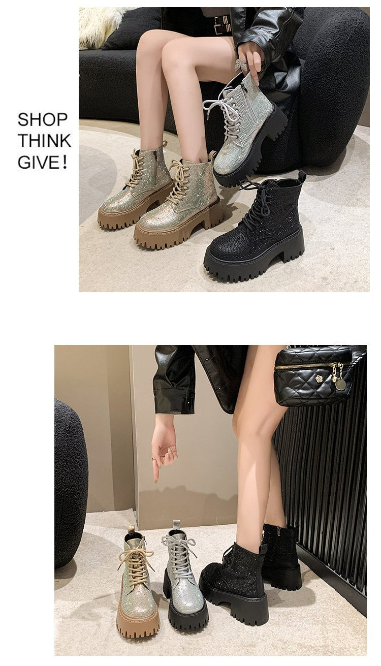 Shine Rhinestone Leather Casual Ankle Boots