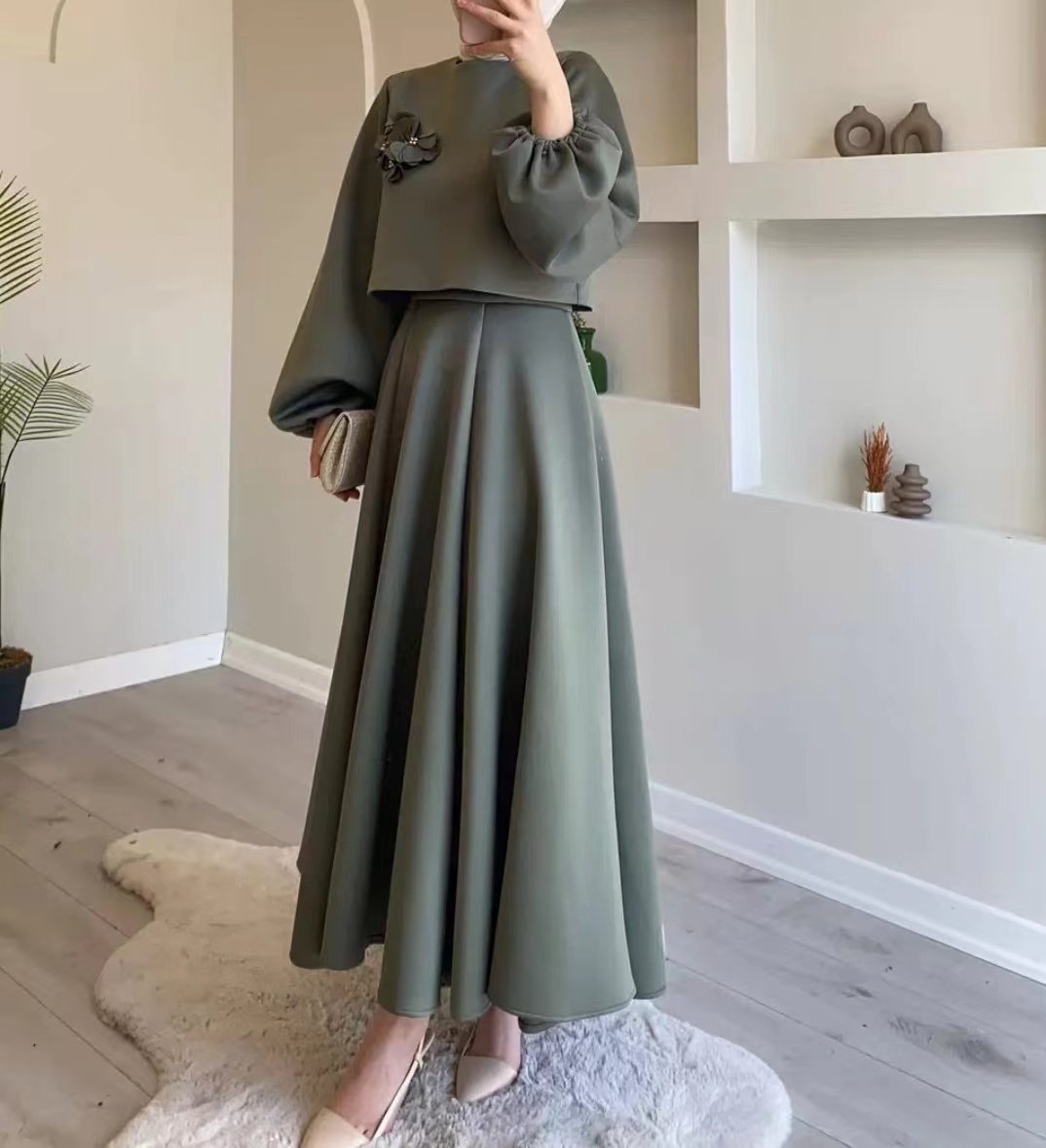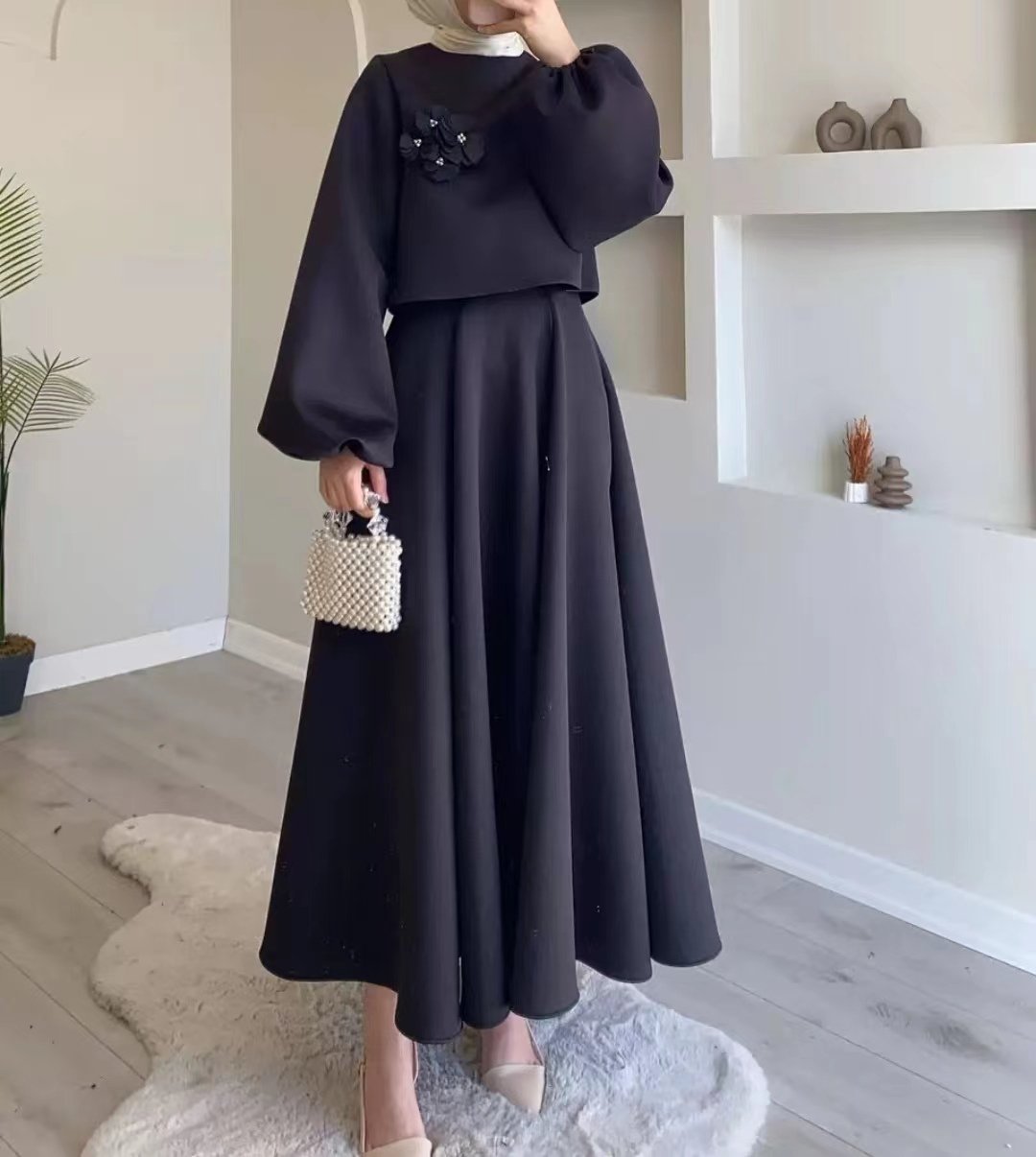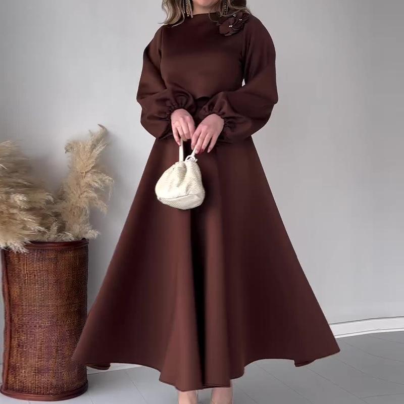 Solid Color Floral Flowy Midi Dress